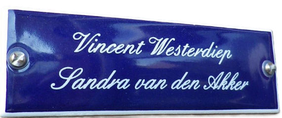 Geëmailleerde naamplaatje voordeur - 11 x 3,5 cm