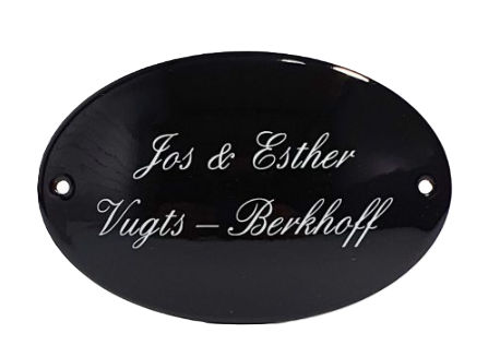 Wij willen dat je helemaal tevreden bent met jouw aankoop. Daarom bieden we de mogelijkheid om een voorbeeld van je persoonlijke emaille naamplaat aan te vragen zodra je jouw bestelling plaatst. Dit voorbeeld kun je bekijken via e-mail en desgewenst aanpassen totdat je helemaal tevreden bent. Kijk gerust rond op onze website voor meer informatie of neem contact met ons op als je vragen hebt. Je kunt ons bereiken via telefoon op 072 8888 636 of per e-mail op [email protected].